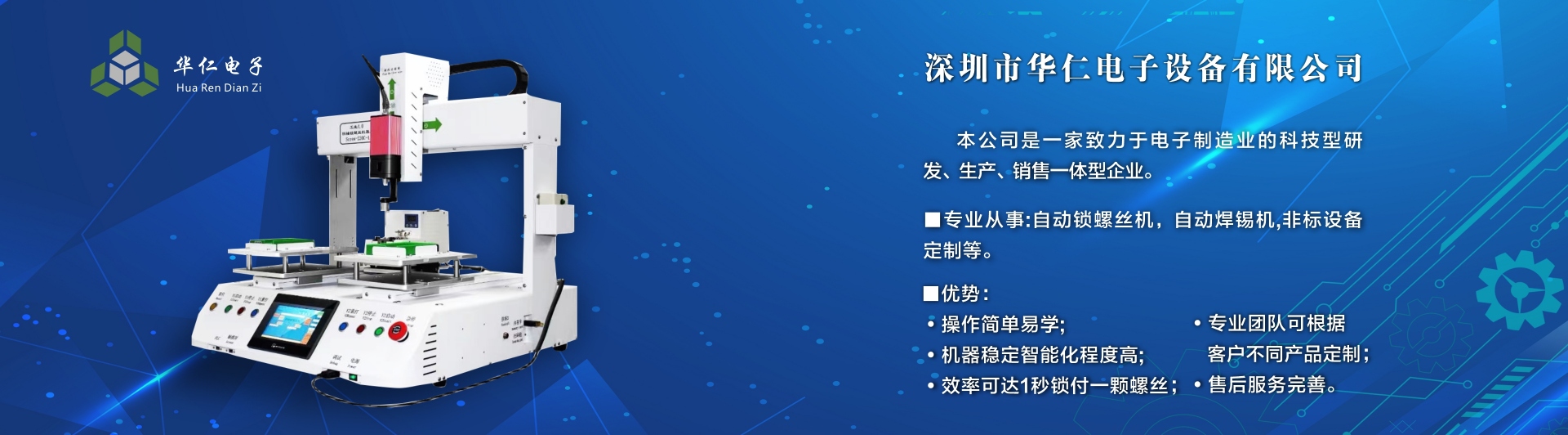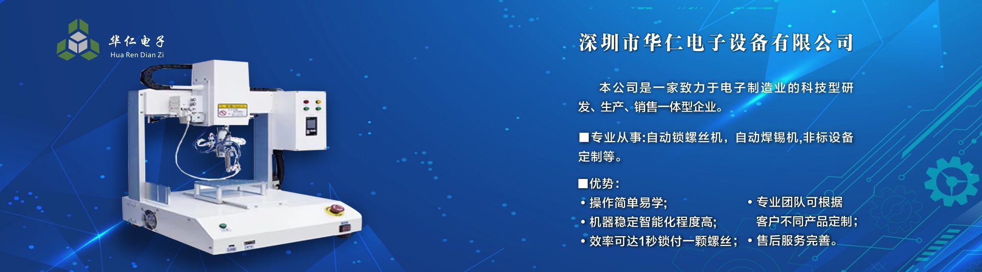 深圳市華仁電子設備有限公司是一家致力于電子制造業(yè)周邊設備的科技型研發(fā)、生產、銷售一體的企業(yè),專業(yè)從事:自動鎖螺絲機;自動焊錫機;非標設備定制機等,公司長期以來在行業(yè)中積累了豐富的經驗,擁有專業(yè)的研發(fā)、技術、銷售支持工程團隊、各高級技術人才為客戶提供優(yōu)質產品和服務,同時不斷吸取國內外先進技術,更準確及時地為客戶提供優(yōu)質,性價比高的產品、公司以專業(yè)的售前、售中、售后服務贏得了客戶的信賴和好評,為客戶提供先進自動化設備一體式解決方案、